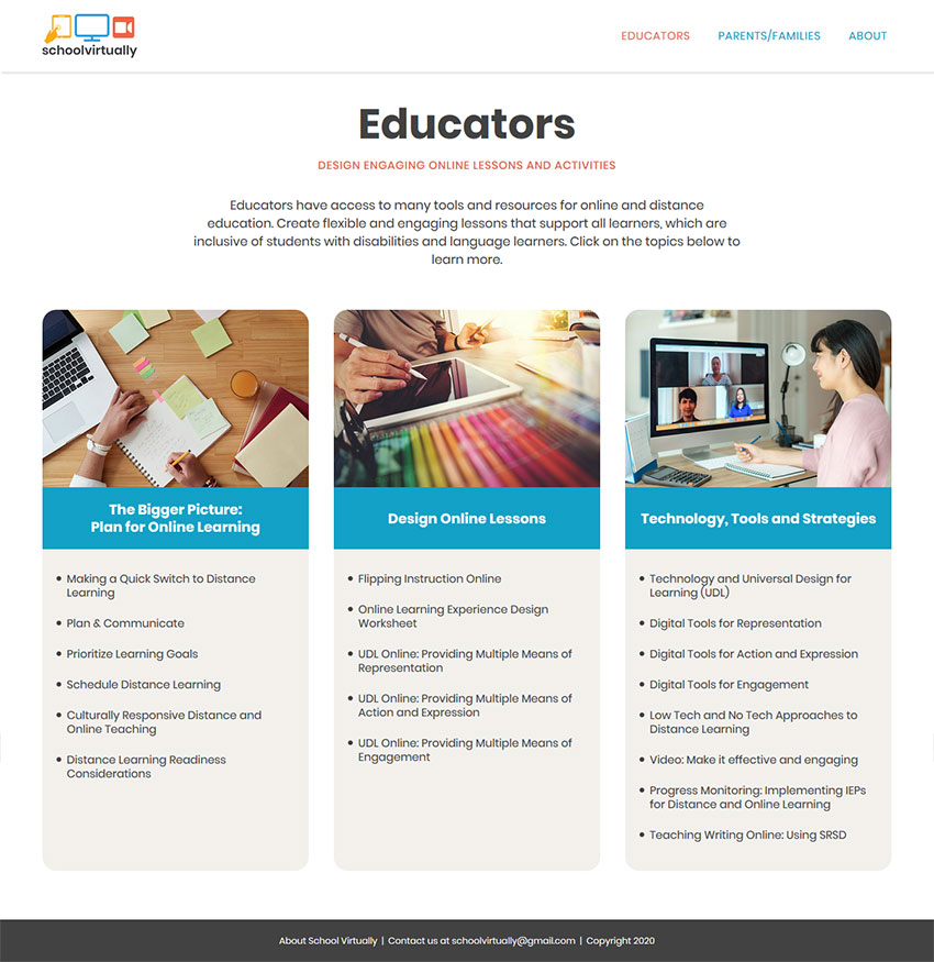 The educators behind School Virtually needed to get their website online fast to meet the moment, as the coronavirus pandemic started shutting down schools in the spring of 2020. I worked at top speed to present design ideas, program pages, and launch the website on a tight deadline.